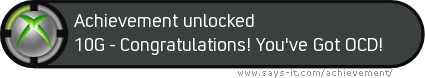 I have a bit of a love/hate thing going with XBox Live Achievements. On the one hand, it appeals to the challenge side of gaming, a way of tracking progress that reaches beyond merely a high score or reaching a certain level. Gamerscore can show how far you have got into a game or just how good you are at it, in a way that a traditional high score tables sometimes can’t. Also they appeal to that slightly OCD sense that many people have and stuff like Pokemon rely on – though they are a bit short of being a Skinner Box.
